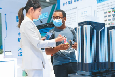 在工程咨询与建筑服务展区,中建旗下多家企业带来新成果。中建一局将元宇宙低碳小镇搬上展台,通过人体信息采集屏为观众在小镇生成对应虚拟游客;自主研发的施工管理机器人,实时生成立体影像,为各类建筑“把脉问诊”。中建玖合公司设计搭建的“未来城市社区模型”首次亮相:像搭积木一样盖好一栋楼,材料拆了还能重复利用;给“温馨小家”装上夹心保温层,能除霾也能热回收;数字孪生技术进入小区,室内室外智能管理……中建玖合董事长徐昌波介绍,中建玖合展台今年突出降碳减排、智慧建造理念,系统展示绿色、低碳、智慧的未来城市单元人居生态,展会期间吸引了大批参观者和洽谈客商。
