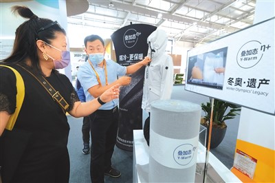 观众在服贸会上参观使用叠加态材料制作的防寒服。 钟飞鹏摄(人民视觉)