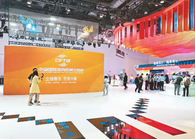位于国家会议中心综合展厅的中国服务贸易成就展专区。 本报记者 邱海峰摄