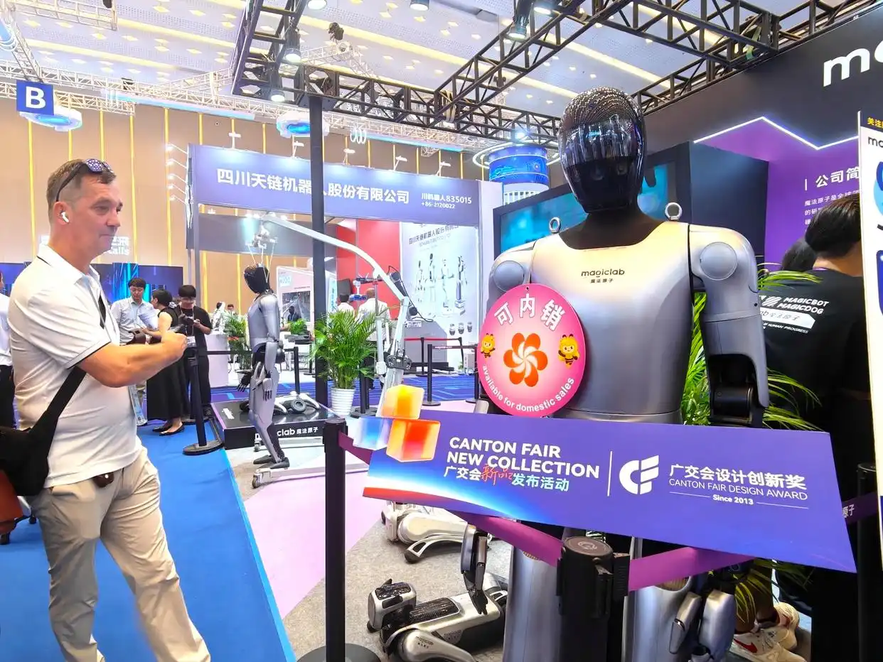 10月15日,广交会现场,机器人产品张贴“可内销”标识。人民网 王雅蝶摄