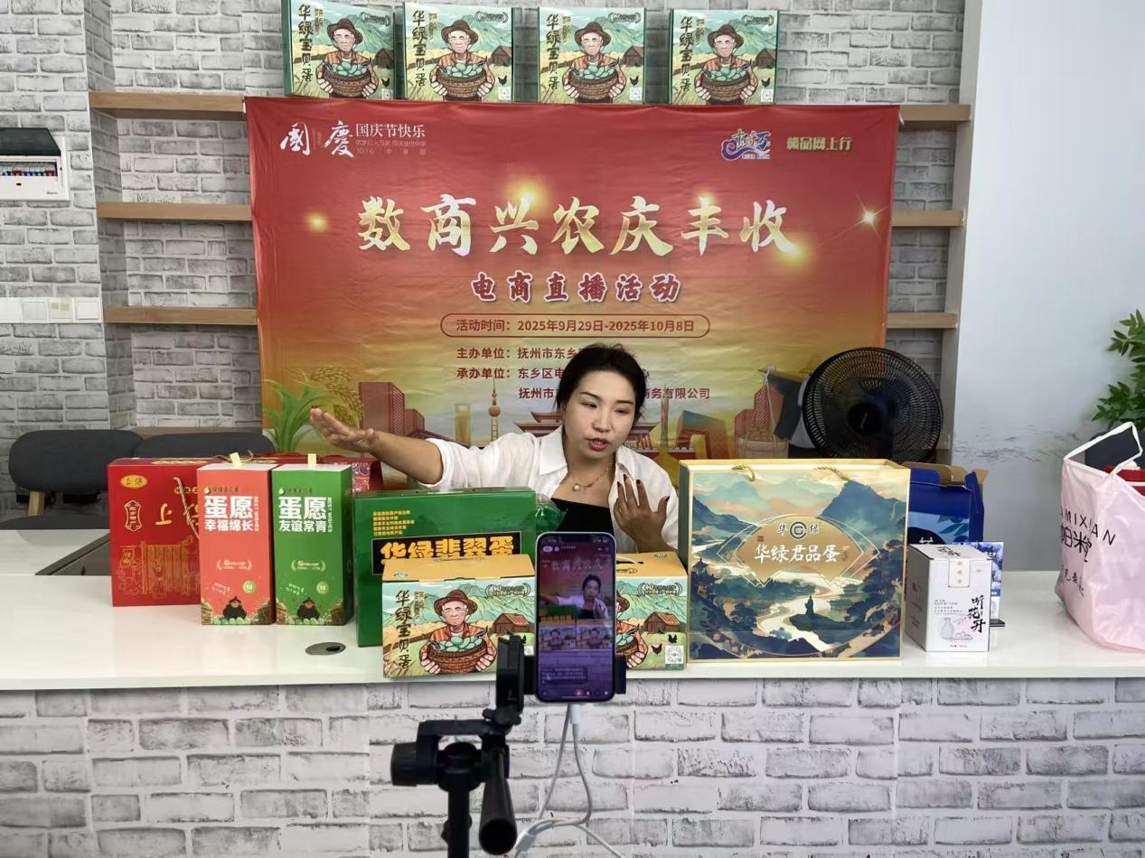 此次活动优选东乡绿壳鸡蛋、王桥花果芋、农家菜籽油、茄子干、萝卜干等二十余款东乡特色优质农产品,在“东创电商”微信小程序、抖音、淘宝、视频号、快手等多平台进行直播销售。直播观看人次超1万人,线上售出绿壳蛋、花果芋等农产品累计突破56万元。(抚州市东乡区商务局 张楠)