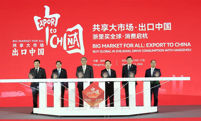 3月15日,“共享大市场·出口中国”系列活动中的“浙里买全球·消费启杭”启动仪式在浙江杭州举行。商务部部长王文涛、浙江省委书记王浩出席并致辞。杭州市推介“出口中国”本地特色创新举措。联合国部分驻华机构代表、中外工商界代表共300余人出席。