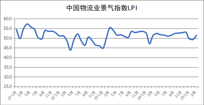 2025年3月份中国物流业景气指数为51.5%