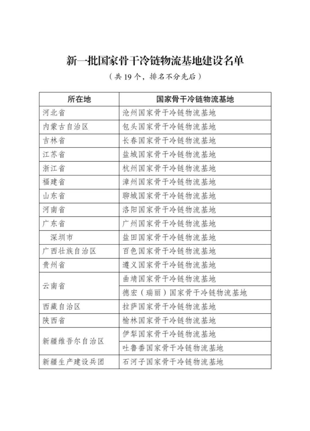 国家发改委发布新一批国家骨干冷链物流基地建设名单